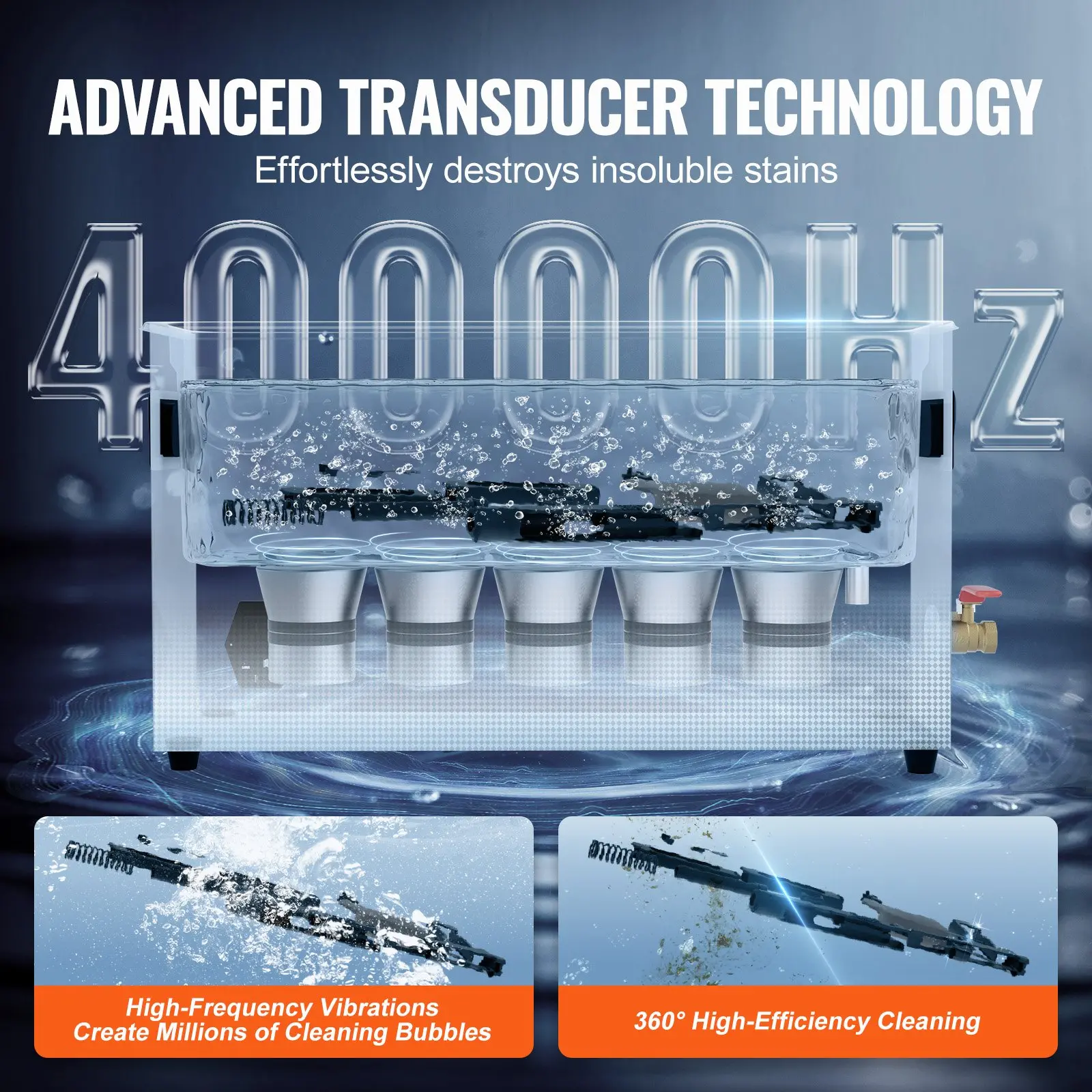 VEVOR 10L Ultrasonic Gun Cleaner, 300W Professional Ultra Sonic Cleaning Machine with Timer & Heater, 40kHz Digital Ultrasonic Cleaner with Basket for Gun Parts, Bullets, Military Supplies