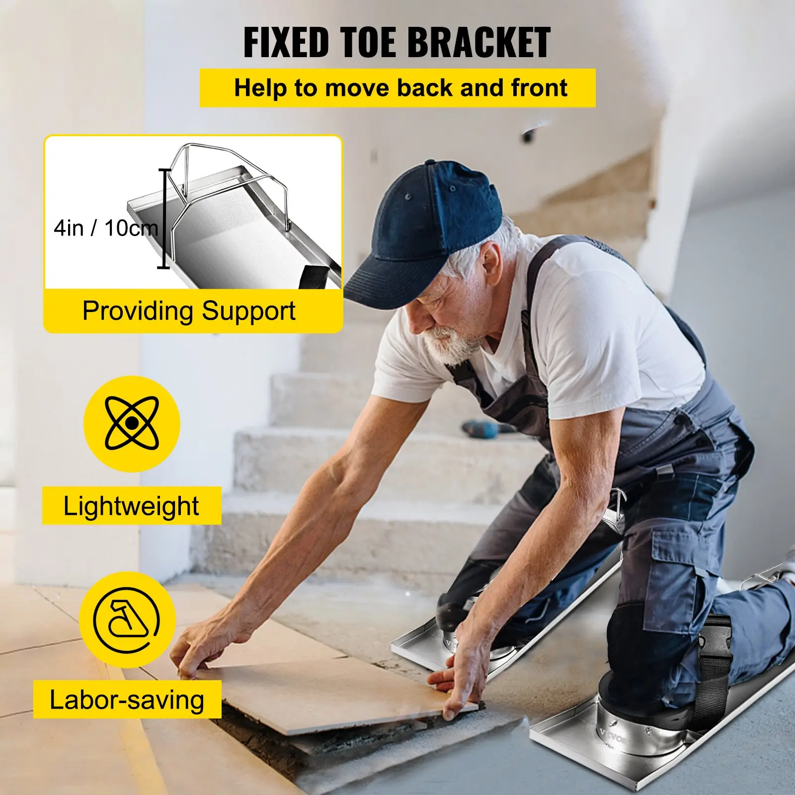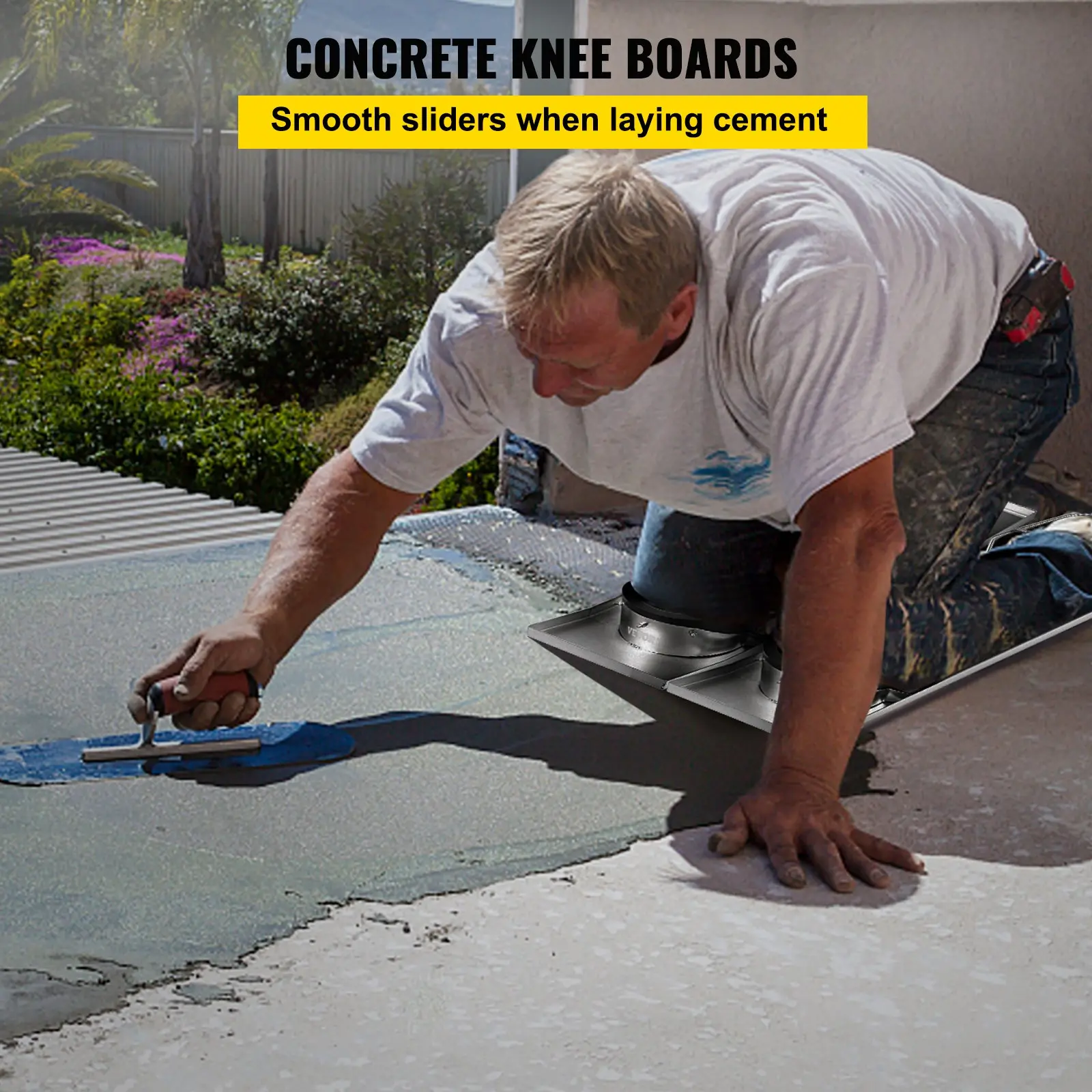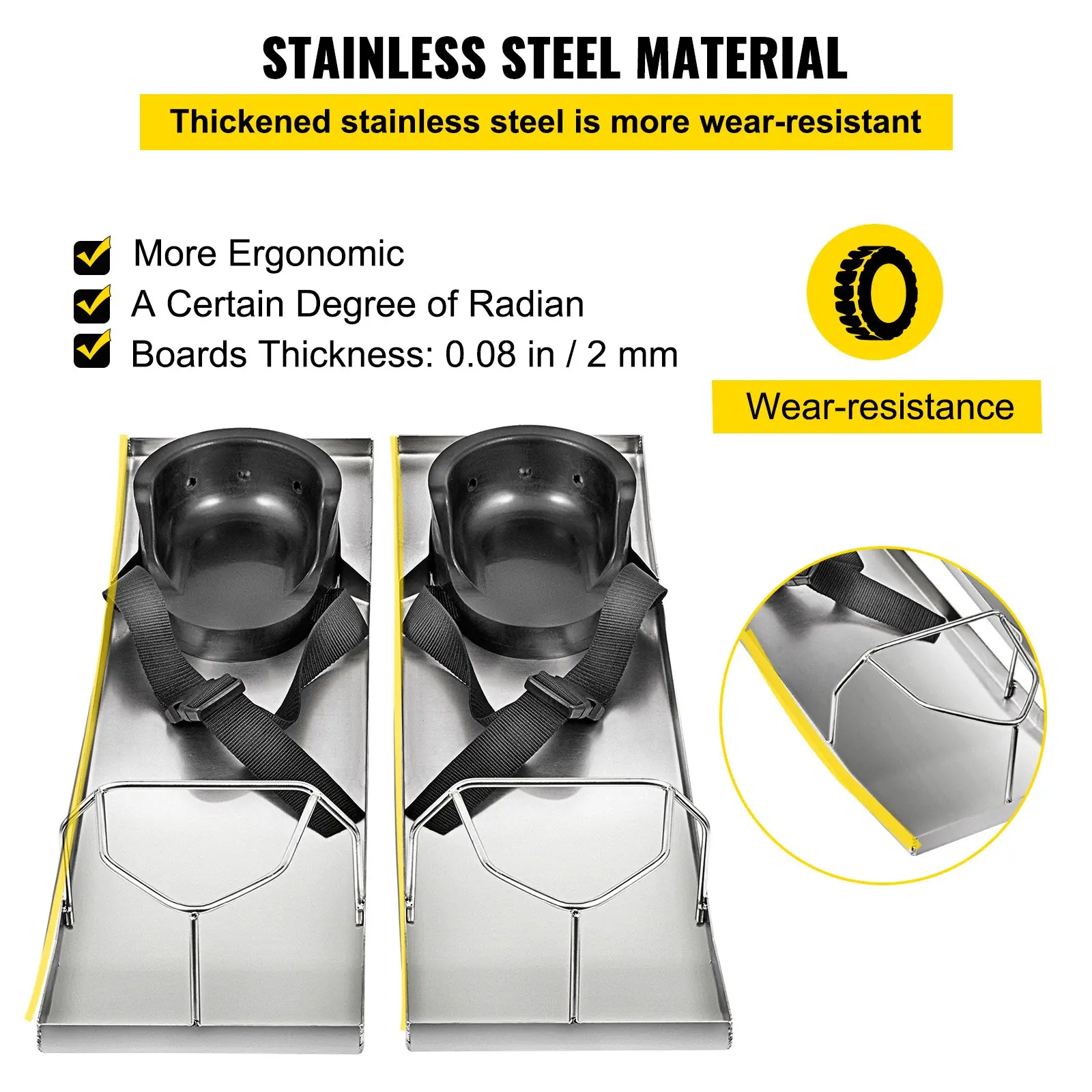 VEVOR Concrete Knee Boards Stainless Steel, 28” x 8” Concrete Sliders, Knee Boards For Concrete, Concrete Knee Pads Moving Sliders, with Knee Pads & Board Straps for Cement and Concrete Finishing