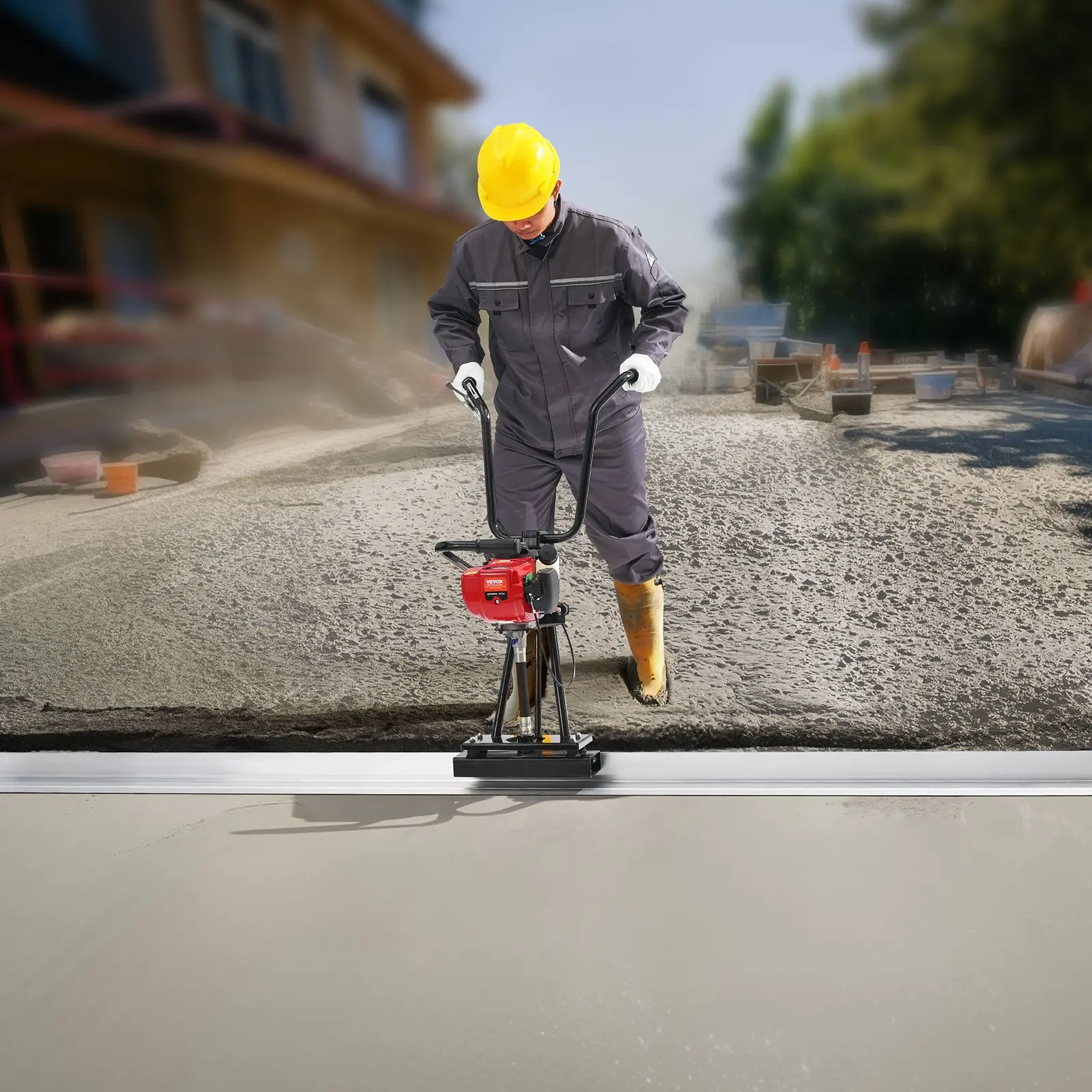VEVOR Gas Concrete Power Screed, 11ft Aluminum Board Straight Edge Bar Set, 4 Stroke Cement Finishing Vibrating Motor with Height Adjustable Handles, High Efficient Concrete Tools 6500RPM