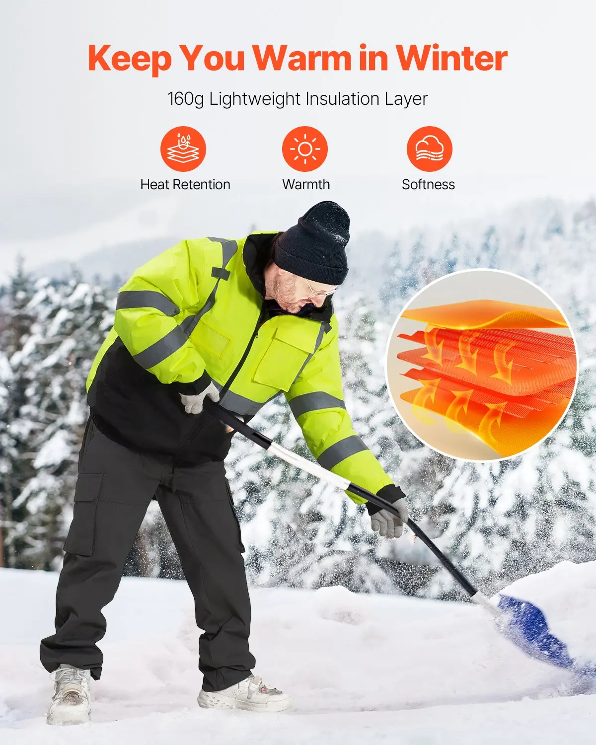 VEVOR High Visibility Reflective Safety Jacket, Waterproof Winter Hoodie, Work Construction Coat with Pockets for Men & Women, Rain Gear Meet ANSI & Class 3, Hi Vis Yellow Coat with Black Bottom, L