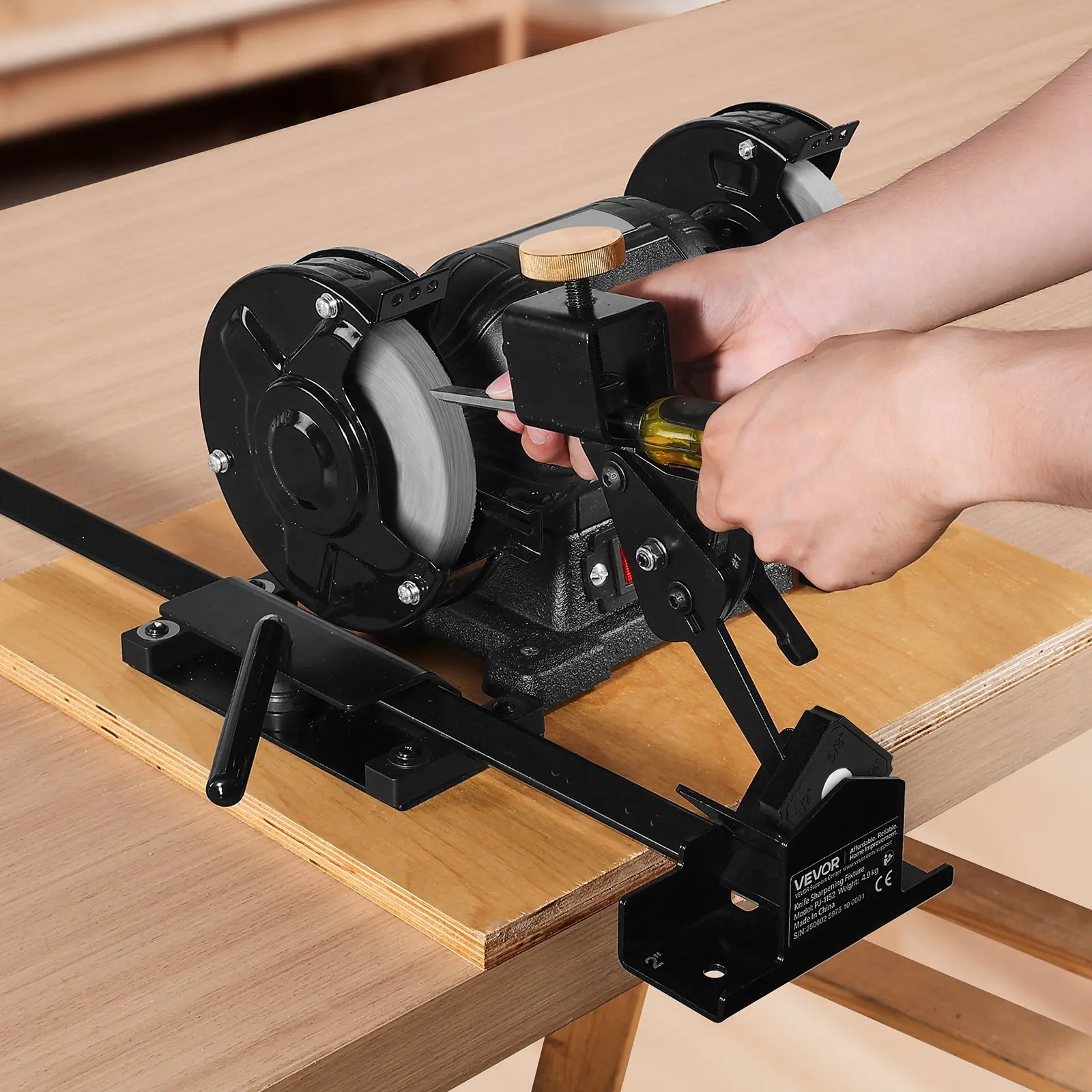 VEVOR Pro Grind Sharpening System, Multi-Grind Sharpening Jig for 6″ & 8″ Bench Grinder – with Platform Jig, Tool Rest Bar, Setup Block, Miter Slide, Micro Bevel Block, for Chisels Woodturning Tools