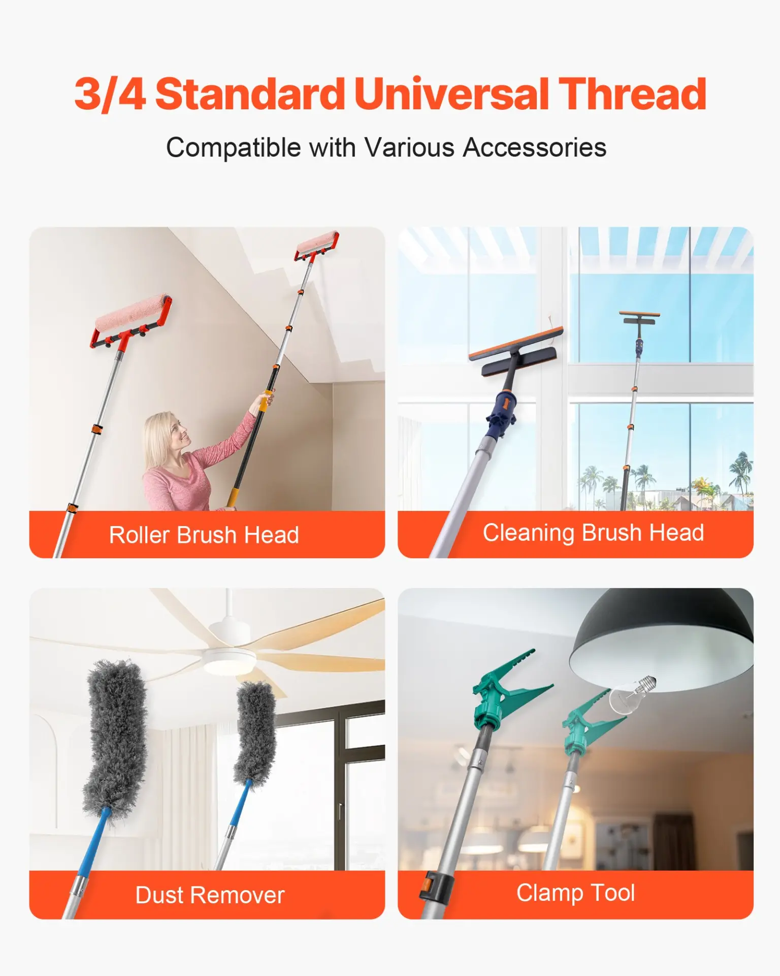 VEVOR Telescopic Extension Pole, 3.8-12 FT Multi-Purpose Extendable Pole, Sturdy Aluminum Alloy Paint Pole Extension with Flip-Lock Design, High Reach Roller Stick for Painting, Dusting and Cleaning