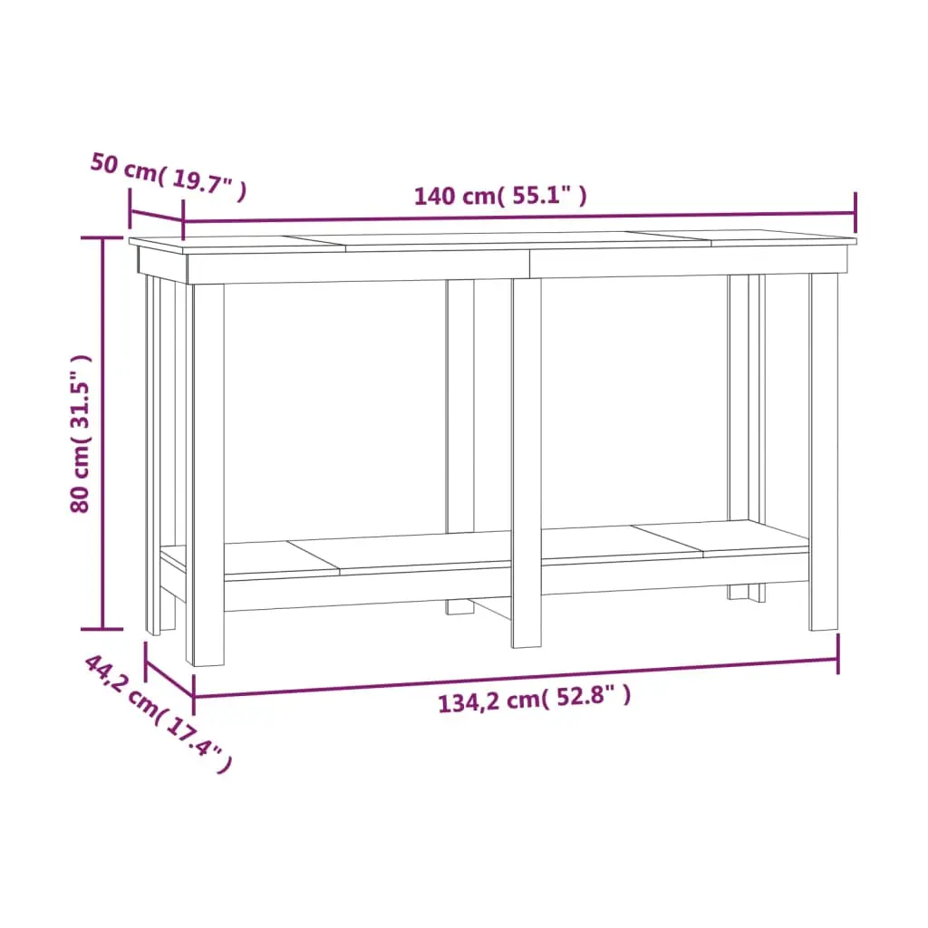 vidaXL Work Bench Black 55.1×19.7×31.5″ Solid Wood Pine