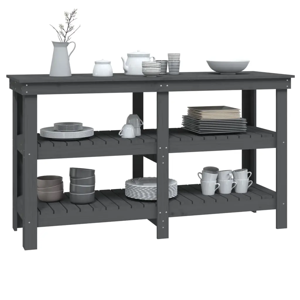vidaXL Work Bench Grey 56.1×19.7×31.5″ Solid Wood Pine