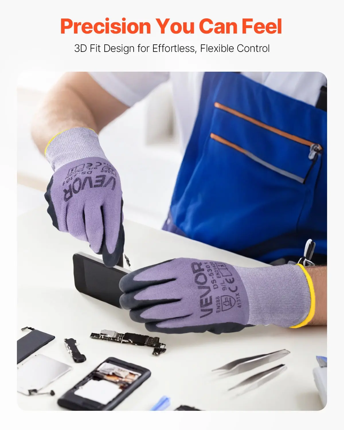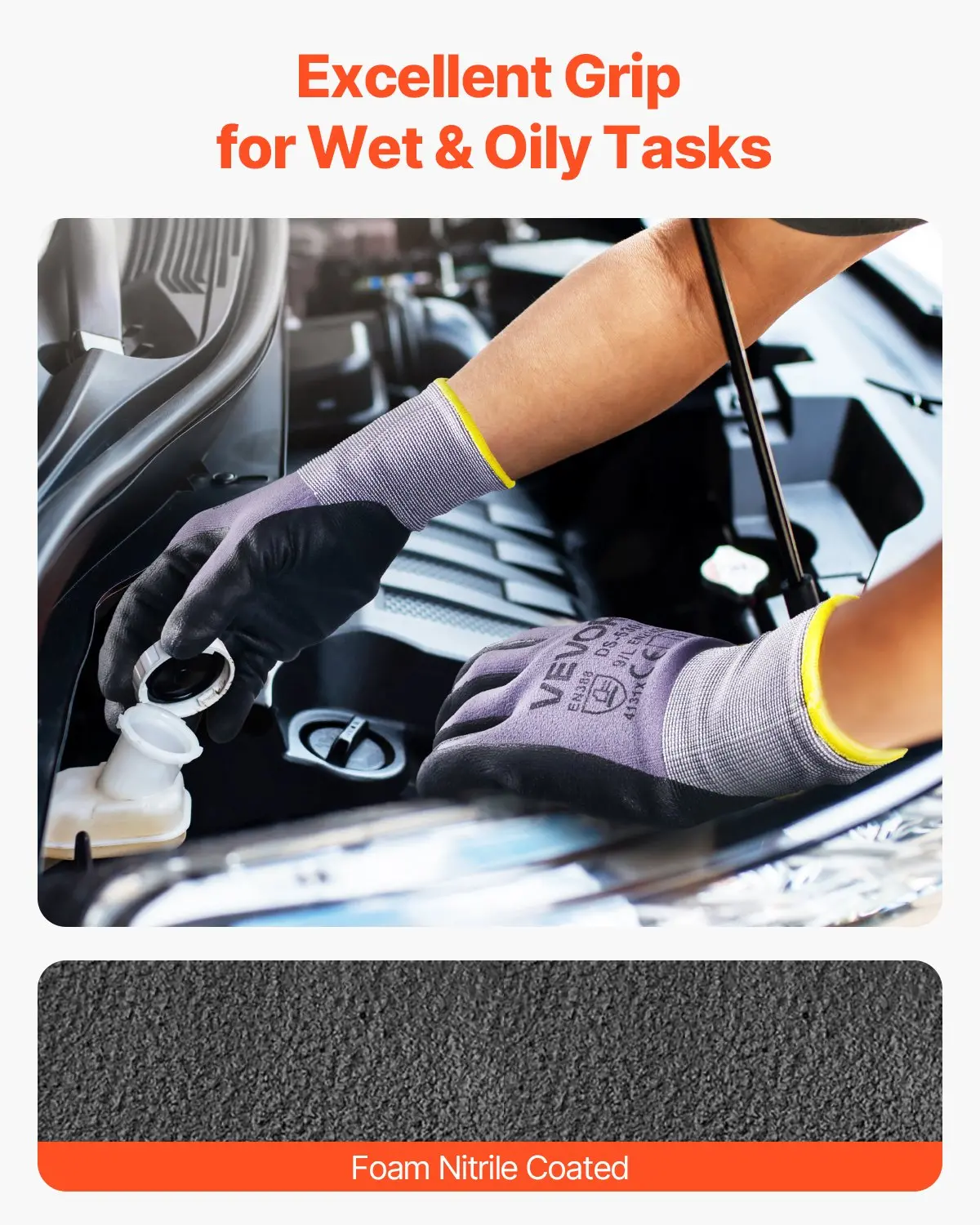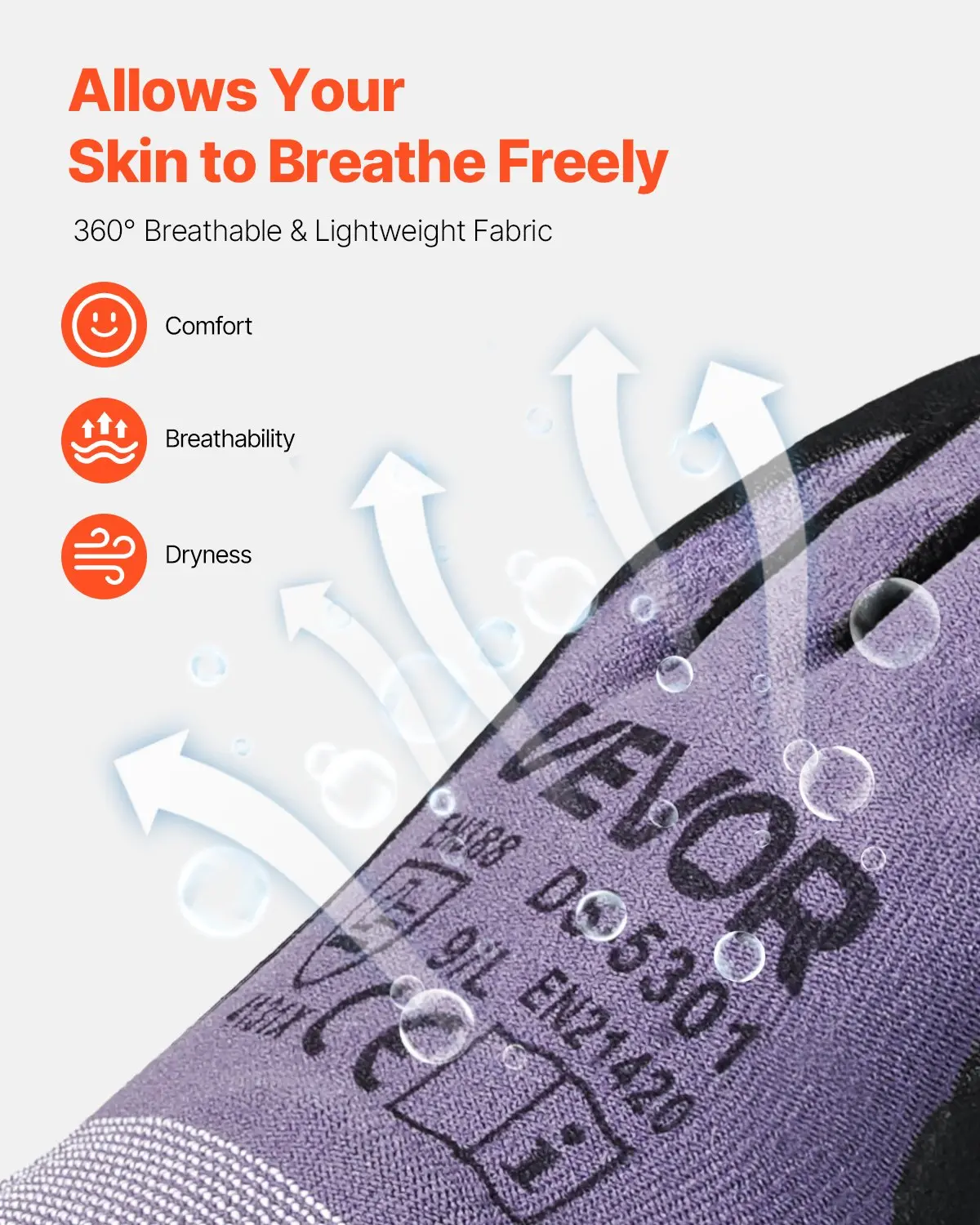 Work Gloves 12 Pairs Touch Screen Nitrile-Coated Garden Construction Gloves